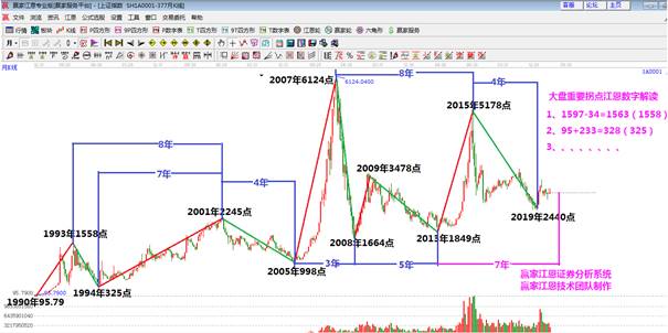 用一張老圖為例,講一下上證指數(shù),2013年6月28是1849低點(diǎn),到2020年6月運(yùn)行8年周期,會(huì)不會(huì)同樣也是一個(gè)低點(diǎn),6124高點(diǎn)時(shí)間是2007年10月,5178高點(diǎn)為2015年6月。高點(diǎn)到高點(diǎn)之間運(yùn)行了92個(gè)月。下一個(gè)高點(diǎn)的時(shí)間為,2023年2月。