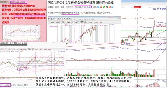 南極電商(002127):3月10日開始關(guān)注,3月27日跟蹤,4月9日跟蹤,該股自生命線附近啟動,到4月18日高點(diǎn),上漲幅度35%。下圖是跟蹤記錄和具體的分析。
