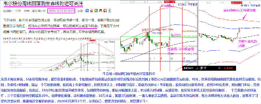 從技術(shù)角度來(lái)說(shuō),只要價(jià)格有波動(dòng),就存在套利的機(jī)會(huì),個(gè)股的操作機(jī)會(huì)就是在量?jī)r(jià)時(shí)空系統(tǒng)分析后找到屬于你自己可以看懂的交易機(jī)會(huì)。對(duì)此,贏家總結(jié)有具體的實(shí)戰(zhàn)選股和交易模型。比如,生命線+時(shí)間窗,就是一個(gè)常用的模型。股價(jià)出于生命線附近,價(jià)格支撐之上,時(shí)間窗口臨近,重點(diǎn)關(guān)注即可!韋爾股份,股價(jià)周線回落生命線,價(jià)格240度支撐,時(shí)間窗口本周,符合選股規(guī)則選出跟蹤,選出后,10月29日股價(jià)放量突破生命線,短期趨勢(shì)也轉(zhuǎn)強(qiáng),隨后開始加速上漲,本周進(jìn)入時(shí)間窗,直接漲停。股價(jià)從生命線上漲到藍(lán)色線附近,一個(gè)完美的小波段操作,三個(gè)交易日獲利空間接近20%。如果你能看懂,這利潤(rùn)也是你的,10萬(wàn)本金,就是2萬(wàn)的利潤(rùn),一套專業(yè)的工具費(fèi)用。金融市場(chǎng)不創(chuàng)造利潤(rùn),有方法賺沒有方法的人的錢,如果不學(xué)習(xí)提升改變認(rèn)知,就很難改變被割的命運(yùn)。