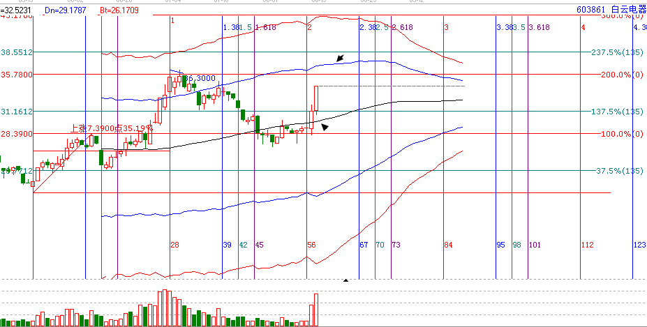 當(dāng)前大盤在生命線上維持震蕩, 由于近期量能未能持續(xù)放大,因此,震動(dòng)走勢延續(xù),個(gè)股操作難度不小,今天盤中銀行、地產(chǎn)等權(quán)重股再次拉盤上漲,但整體量能依舊未能有效放大,后期走勢難免反復(fù),這對我們選股要求很高,因此,在后期的選股中,仍然是以生命線附近的股票為首要參考對象,結(jié)合價(jià)格及時(shí)間因素做好優(yōu)中選優(yōu),對于今天操作的白云電器(603861),我們做下簡單的解析。