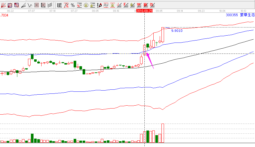 江恩技術(shù)分析:300355在8月29日開(kāi)始關(guān)注,通過(guò)極反通道、趨勢(shì)線,以及黃金時(shí)間周期線的分析,再加上成交量的配合,在短線和波段上都是有很大的潛力的,因此開(kāi)始操作。