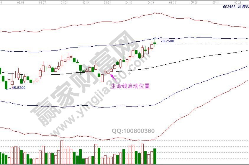 日線買點——生命線啟動,站穩(wěn)一線看高一線,第一目標(biāo)位藍(lán)色上軌線位置,目前已經(jīng)到達(dá)藍(lán)色上軌線第一目標(biāo)位。