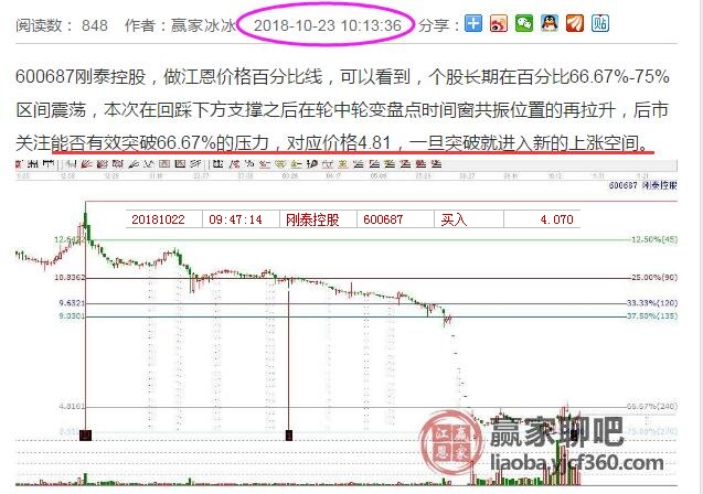 第一波:剛泰控股從17年底就開始了超過70%的大跌。從跌幅上看已經(jīng)是很驚人的了,從18年9月開始,連續(xù)下跌之后,個股在江恩價格百分比75%的位置獲得價格支撐,止跌企穩(wěn),開啟持續(xù)震蕩整理走勢,從價格上講,符合買在價格支撐操作規(guī)則,咱們贏家江恩結(jié)合江恩的價格百分比工具與極反通道藍色下軌線共振,用戶于22號提前參與,23號在群中以及贏家江恩聊吧同步發(fā)布,在23號當天收獲漲停,24號盤中沖擊漲停,25號再收漲停,三個交易日,累計獲利25%左右。