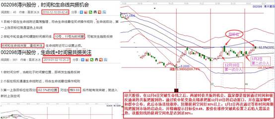 潯興股份,在12月6日突破生命線之后,兩波時(shí)價(jià)共振的機(jī)會(huì),贏家都是提前通過(guò)時(shí)間和極反通道的共振把握到的。通過(guò)輪中輪變盤點(diǎn)精準(zhǔn)把握12月10日的啟動(dòng)窗口,并在贏家聊吧和群中公布,此后市場(chǎng)連續(xù)漲停,短期獲利空間打30%以上;1月2日再次通過(guò)等距時(shí)間周期線把握到市場(chǎng)的啟動(dòng)點(diǎn),并精確提示目標(biāo)位9.69,股價(jià)在漲停突破此位置之后陷入震蕩走勢(shì),該股短線的獲利空間也是達(dá)到近30%??梢?,好的股票可以反復(fù)做,而通過(guò)極反通道生命線和時(shí)間窗口選擇個(gè)股就是最簡(jiǎn)單的方法。