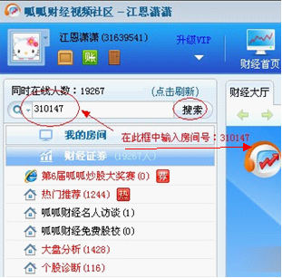 第四步:在大廳的左上角輸入贏家江恩房間號:310147,然后點擊搜索。在搜索結(jié)果右邊點擊贏家江恩進(jìn)入即可。