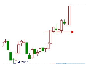 (四)大陽線后,回調至0。618位置或回調至大陽線底部位置。