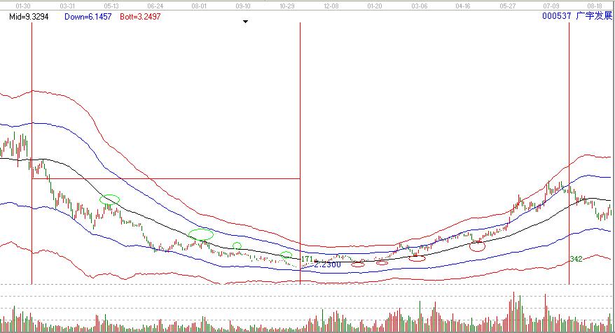 000537在2008年3月份11快附近破極反通道生命線開(kāi)始下跌,在下跌的過(guò)程當(dāng)中,都是碰到極反通道就下的,直到2008.11.月份見(jiàn)底后上攻建發(fā)集團(tuán)的生命線,短期的橫盤后展開(kāi)了一波小牛行情,在上升的過(guò)程當(dāng)中,每一次極反通道生命線的回踩都是你所介入的位置,極反通道買賣交易規(guī)則,這樣你就不會(huì)被黑馬拋棄了。直到上攻到2009.7月份11.00附近,中間有誤差【低點(diǎn)到高點(diǎn)剛好運(yùn)行了一個(gè)循環(huán)】