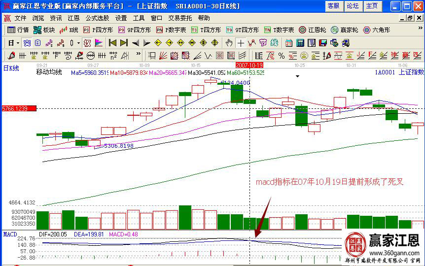 重要的是macd指標(biāo)買賣點(diǎn)的確認(rèn)情況,分析上漲指數(shù)在2007年10月19日的走勢(shì)變化,指數(shù)在下跌的第三天,均線拐頭向下,macd指標(biāo)形成了死叉的賣出信號(hào),這個(gè)時(shí)候投資者應(yīng)該已經(jīng)是選擇賣出了。這個(gè)時(shí)候發(fā)現(xiàn),均線死叉、均量線死叉、macd指標(biāo)死叉是連續(xù)的出現(xiàn),說明前期的走勢(shì)形成的是一個(gè)短期的頭部形態(tài),希望投資者把握其中的盈利機(jī)會(huì)。