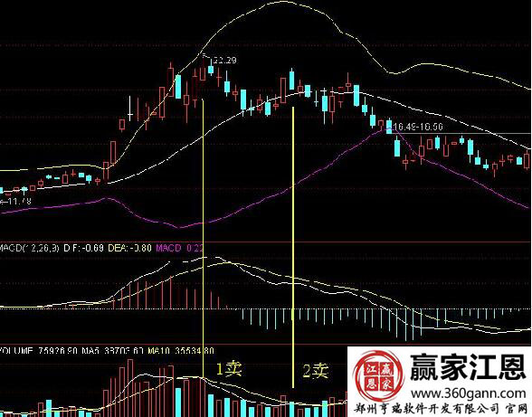 在股價(jià)運(yùn)行進(jìn)入中陰狀態(tài)之后,上軌和下軌都會(huì)出現(xiàn)滯后的反應(yīng),也就是說,等第一次回跌或回升后再次向上或下跌的時(shí)候,上軌和下軌才會(huì)轉(zhuǎn)向,此時(shí)轉(zhuǎn)向的上軌和下軌,一般會(huì)成為最大的阻力和支持,就形成了第2買賣點(diǎn);