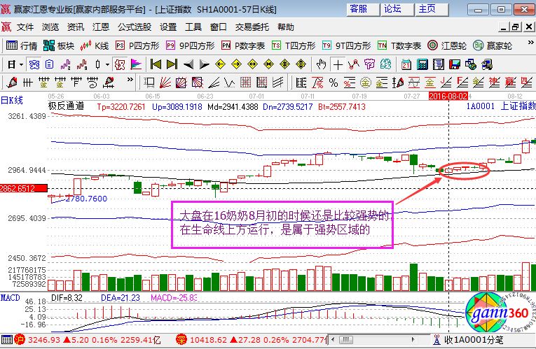 大盤(pán)的上證指數(shù)在2016年8月初的走勢(shì)中處于生命線上方的走勢(shì)形態(tài)(如上圖),其處于強(qiáng)勢(shì)區(qū)域,建議投資者可以選擇買入較強(qiáng)勢(shì)的個(gè)股,以生命線為標(biāo)準(zhǔn)點(diǎn)買入。