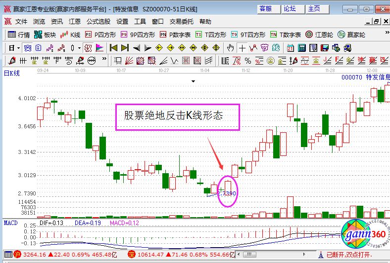 特發(fā)信息(000070):特發(fā)信息在經過07年到08年的慘烈下跌后,股價于2008年11月7日走出了“絕地反擊”,當天股價跳空低開,然后一路震蕩上行,尾盤收于次高點3.06元。