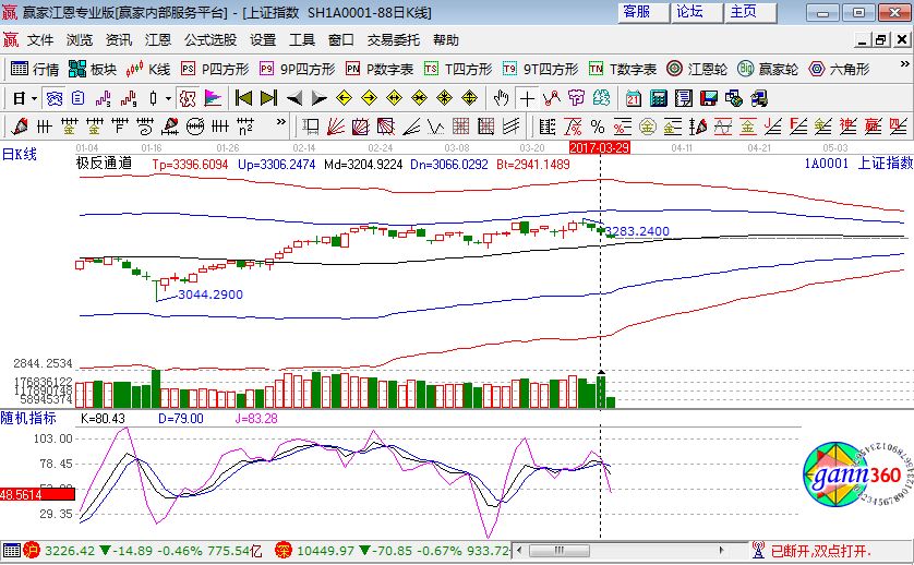 2、k值向上突破d值為買入金叉信號(hào),向下跌破為賣出死叉信號(hào)。