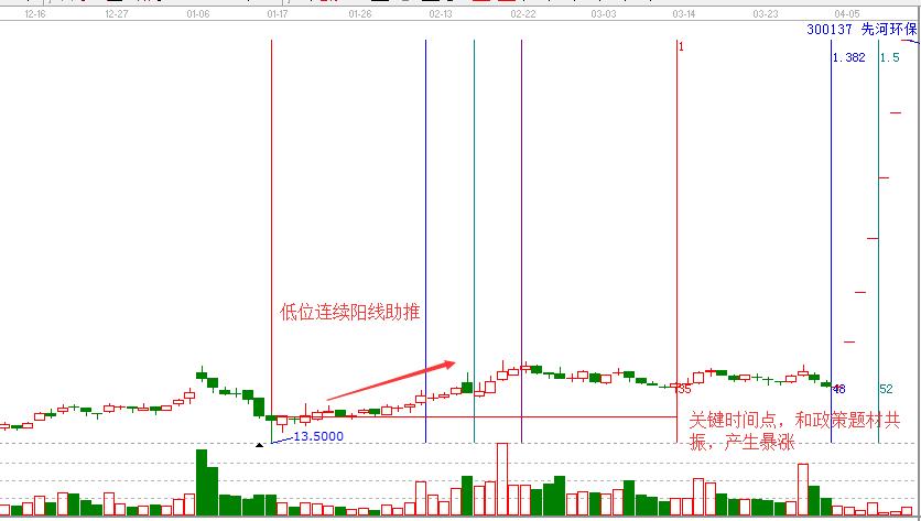 滬深市場中每輪牛市,漲幅最大的股票都是主力籌碼異常集中的低位螺旋槳股,尤其是那些經過長期下跌依然扛過來的主力嚴重被套的股票,市場一旦好轉,他們會的股票具有報復性的反彈和失去理性的瘋狂。螺旋槳股票啟動的時間有時會落后于大盤,因為主力需要出一部資金,作為拉伸資金,對于這種股票,一旦發(fā)現(xiàn)底部有拉升跡象,應該果斷參與,如先河環(huán)保走勢圖。