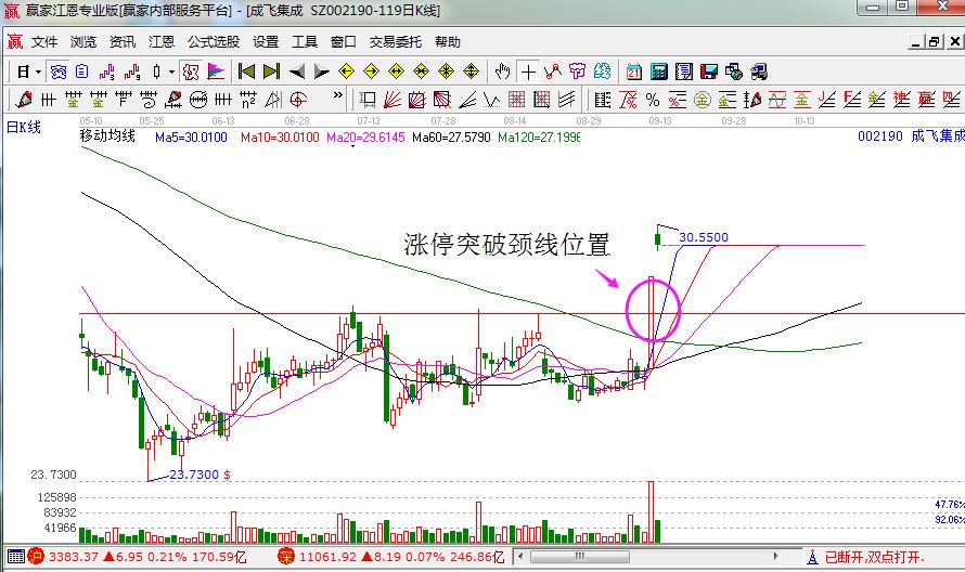 通過對(duì)于股票的研究,小編發(fā)現(xiàn)漲停最容易出現(xiàn)在突破下降壓力線位置、突破重要的頸線位置,當(dāng)然還要突破上升通道上軌、改變上升速率的位置、均線多頭(30日線)的挖坑位置。顯然位置是非常重要的,但是對(duì)于關(guān)鍵的起漲點(diǎn)也是需要消息的刺激的,這樣才能夠狙擊成功。