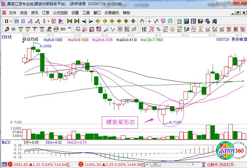 投資者可以按照三天法則來進行操作。首先確定出二分位,找出中軸線,螺旋槳重心在中軸線之上運行,則向上旋,在中軸線之下運行,則向下旋。其次在連續(xù)三天股價均在二分位之上,則后市股價上漲,在三天后當股價突破螺旋槳的最高價,同時放量滿足135均線,那么則意味著上漲走勢確立了。