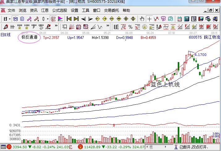 投資者如果能夠很好的把握這種走勢(shì),獲得在后面的加速上揚(yáng)的利潤(rùn)也是非常有可能的,當(dāng)然可能有的朋友對(duì)于此形態(tài)覺得還是有一定的風(fēng)險(xiǎn)的。當(dāng)然結(jié)合極反通道指標(biāo),我們可以看到此時(shí)的弧度表現(xiàn),主要是支撐線是在藍(lán)色上軌線的,而且股價(jià)是處于強(qiáng)勢(shì)區(qū)域中的,所以投資者在進(jìn)行買賣分析的過程中,可以依據(jù)藍(lán)色上軌線和紅色上軌線來進(jìn)行判斷阻力和支撐。