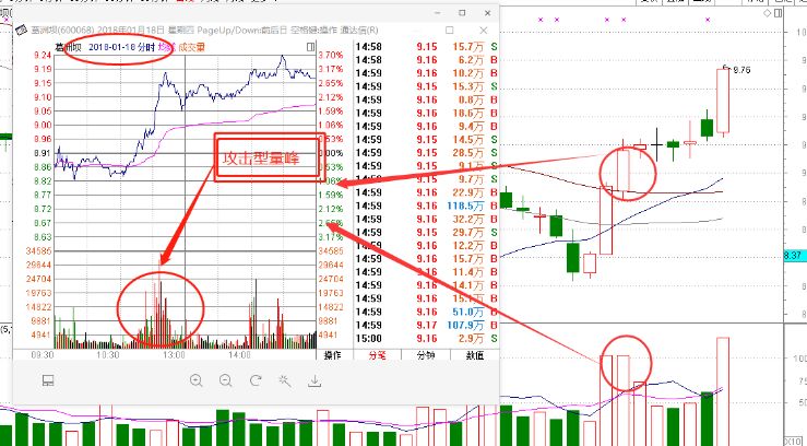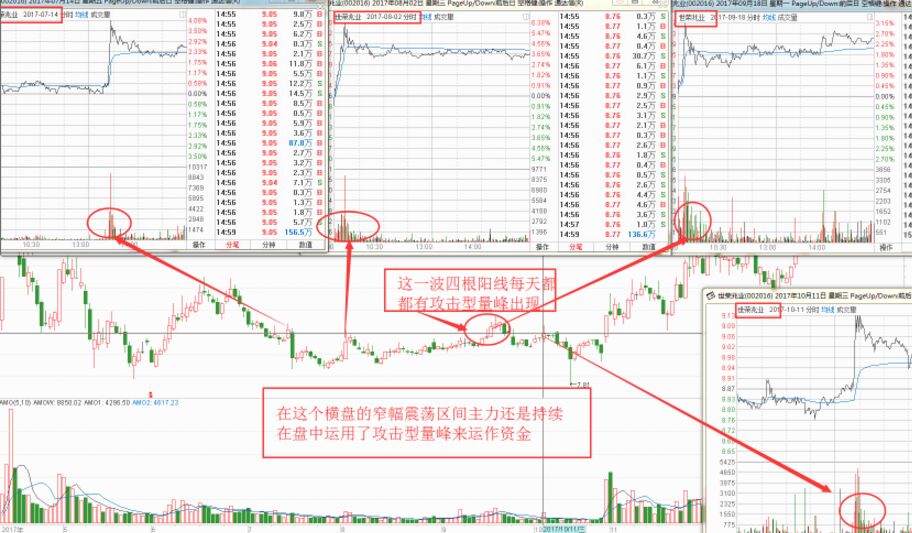 攻擊型量峰是怎么樣的?它指的就是在交易過(guò)程中,主力機(jī)構(gòu)在盤(pán)中不間斷地持續(xù)投入大筆資金積極買(mǎi)進(jìn)所造成的股價(jià)在特定時(shí)間段發(fā)生劇烈波動(dòng)的現(xiàn)象。由于攻擊型量峰在盤(pán)中不間斷的持續(xù)性大筆資金的投入,這就決定了不可能是小資金的行為,所以投資者對(duì)于這樣的股票挖掘是具有實(shí)戰(zhàn)意義的。如下圖所示。