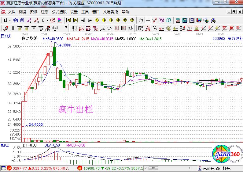 如果一只個(gè)股符合上面的這寫特征的話,那么基本上就可以斷定是短線的瘋牛出欄的走勢(shì)了。接下來我們就通過相應(yīng)的實(shí)戰(zhàn)案例來為大家進(jìn)一步的分析。