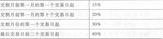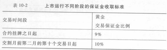 如表所示,自合約掛牌之日開始到交割月前二月的第十個(gè)交易日以前,交易所的保證金比例為9%;自交割月前二月的第十個(gè)交易日開始至交割月前一月的第一個(gè)交易日,交易所的保證金比例為10%。