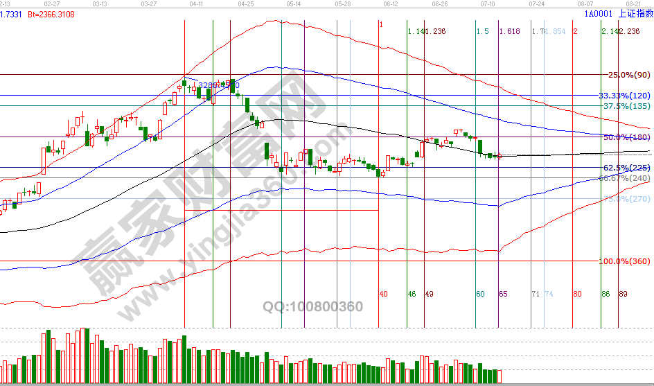 15號是月初通過贏家江恩系統(tǒng)時間周期工具測算出的7月第二個時間窗口,大盤結(jié)束為其3天的黑色生命線下運(yùn)行收復(fù)并站在線上,這是一個積極信號,不完美之處有兩點(diǎn),一是收復(fù)時成交量未放大,二是短周期不協(xié)調(diào)。綜合判斷,今日早盤收復(fù)短線參考關(guān)鍵線,依據(jù)工具規(guī)則激進(jìn)者可分開始分批博弈參與,同時提供了應(yīng)對策略為向下失守60分鐘藍(lán)色下軌線被動出局,向上觀察江恩價格四方形等空間工具測算得出的2844、2966點(diǎn),突破收復(fù)2966后才能向上拓展空間。7月15號盤中壓力是225度2944點(diǎn)、270度2961點(diǎn),盤中支撐是135度2911點(diǎn)、90度2894點(diǎn)。操作策略,指數(shù)圍繞極反通道生命線上下震蕩,2822反彈動作還未明確結(jié)束信號,時間窗口關(guān)注方向選擇,整體持倉保持3成左右。
