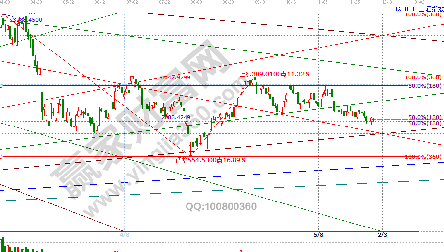 指數(shù)早盤觸及江恩箱3/8空間分割位2870點(diǎn)止跌,全天圍繞下降1*1線震蕩,隨著時間窗6號臨近,市場盤中震幅收斂到極致方向選擇在即,空間上,指數(shù)向上突破3*2線2914點(diǎn)則順勢做多,反之如跌破2870點(diǎn)快速下行挖坑,在江恩箱2*1線2810支撐尋找機(jī)會,5、6號兩個交易日重點(diǎn)跟蹤方向選擇,跟隨市場做好倉位應(yīng)對。5號盤中壓力2894、2911點(diǎn),盤中支撐2860-2870位置。操作策略,指數(shù)生命線下弱勢區(qū)域,倉位控制在3成,穩(wěn)健者重點(diǎn)關(guān)注12月6號時間窗口機(jī)會。