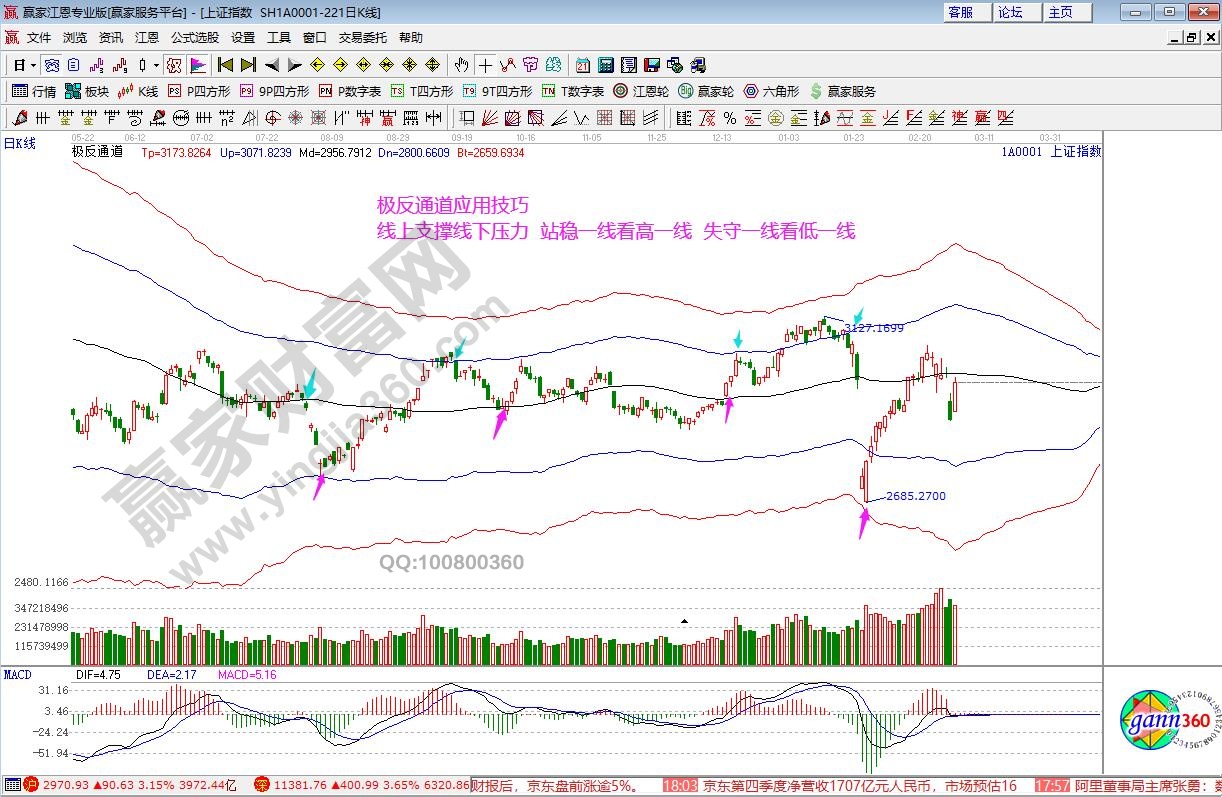 ☆依據贏家江恩系統(tǒng)極反通道分析:指數日K線收盤在黑色生命線下,按規(guī)則短期看空。