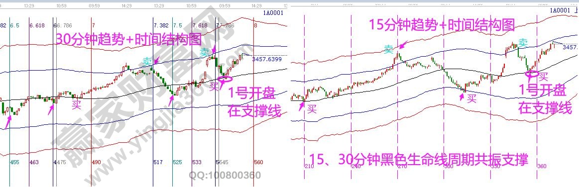 1號滬指再度逼近7月3458高點,突破高點勢在必得。30號上攻日線江恩箱8*1線與極反通道藍色上軌線共振壓力回落,對1號市場分析預判中談到,60分鐘生命線上運行市場還將延續(xù)反攻,此結論是從短周期時間結構中推導得出??臻g上學員可以打開工具,通過極反通道查看30、15分鐘K線圖,周期共振信號直觀、清晰可見,在贏家江恩體系中此信號是解決如何確立買賣點,市場流傳一句會買的是徒弟,會賣的是師傅,而該信號不僅解決了買點,更解決了賣點,同時成功率達85%以上,并且信號出現(xiàn)就是空間拐點,是廣大投資者所期望的買在低點賣在高點模式。2號下午3:30將在學員群講解此模式實戰(zhàn)應用技巧,聽課方式聯(lián)系贏家工作人員。
