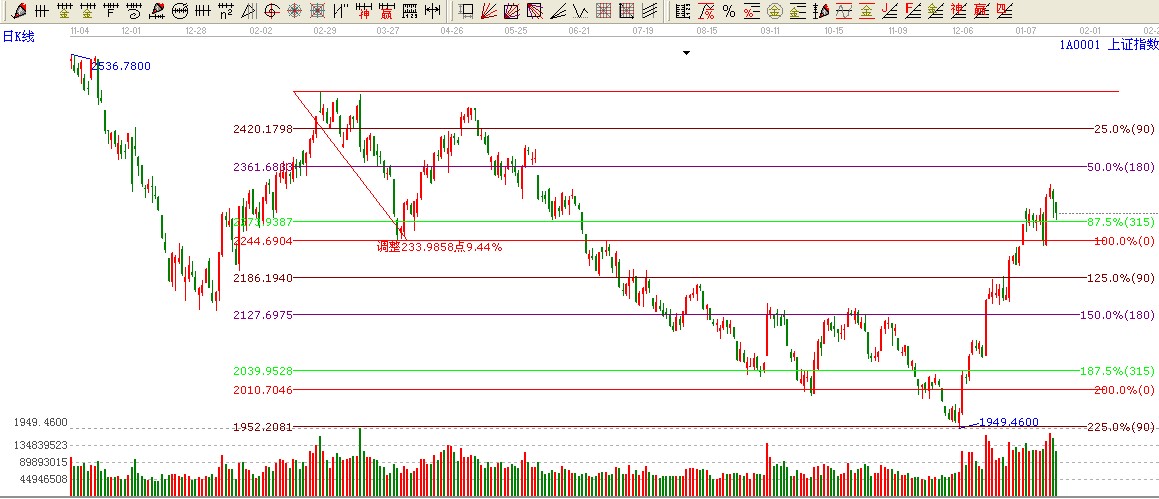 ★依據(jù)贏家波段百分比伸線提示:大盤依然在315度2270上方運行,下一位置就是其180度位置壓力2360附近了。315度位置不破看多。