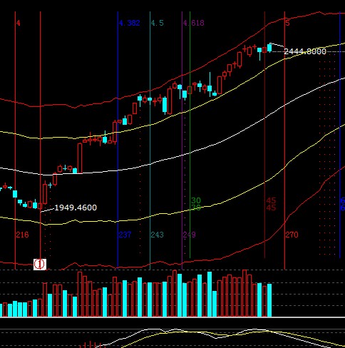 大盤節(jié)后第一個交易日創(chuàng)新高回落陰線報收,短周期箱體震蕩失守生命線預(yù)計回落確認(rèn)日線外軌線,整體趨勢生命線不破做多觀點(diǎn)不變,操作可通過提升止損位保護(hù)收益或倉位上做高拋低吸降低成本,21號是本周時間窗口,短期支撐2405-2389,阻力2430-2438;