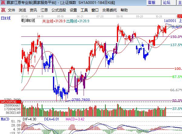 咨詢:13333833889大盤低開高走強勢反彈上漲0.84%,滬指盤中創(chuàng)出10個月新高,創(chuàng)業(yè)板最弱漲幅也達(dá)0.32%。大金融板塊券商和保險領(lǐng)漲權(quán)重,石油、有色漲幅墊后;題材方面中字頭為主的一帶一路,債轉(zhuǎn)股和PPP概念領(lǐng)漲,次新、股權(quán)轉(zhuǎn)讓、高送轉(zhuǎn)預(yù)期股早盤集體上攻,但尾盤再度集體跳水走出沖高回落局勢,黃金領(lǐng)跌。個股上漲居多成交量放大。技術(shù)方面,滬指各周期站在生命線上,短周期還有一定上升勢頭,妖股已進入收割期,關(guān)注低位趨勢即將突破補漲類個股,日線走勢按照極反通道指引來進行策略的調(diào)整,波段倉5成保持不變,短線3140-3160區(qū)間是江恩百分比和藍(lán)色外軌線位置,周四在3090加的籌碼在短線阻力區(qū)拋售,3111、3100為日內(nèi)支撐,3140、3149為日內(nèi)阻力,僅供參考,不構(gòu)成任何投資建議。
