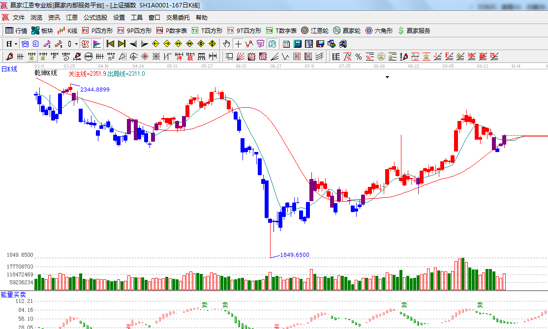 ★依據(jù)贏家江恩系統(tǒng)極反通道提示:短周期30分鐘還有上升級(jí)空間2220,日線外軌線2240區(qū)域;