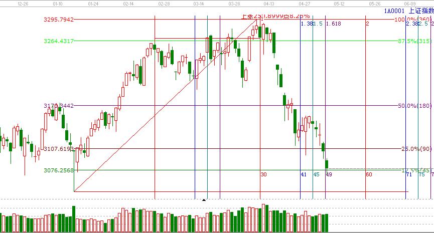 依據(jù)贏家江恩技術(shù)工具分析得出:周一,滬指低開低走,直奔3075點,小幅反彈后再次回落,最低試探極反通道藍色下軌線3067點后回升,收盤在3078點,極反通道,物極必反,目前藍色下軌線附近,超跌反彈隨時可能發(fā)生,百分比價格上3075點的得失也非常重要,重點觀察5月9日的量價表現(xiàn),操作上,做好分批低吸的準備,機會上,可重點關(guān)注質(zhì)地優(yōu)良、業(yè)績增長明顯的創(chuàng)業(yè)板超跌股。