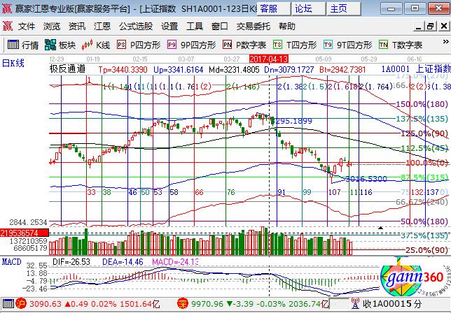 大盤上周五低開震蕩縮量微漲收小陽線,幾大指數(shù)整體處于弱勢震蕩格局。板塊方面,家電、釀酒和電力等藍籌板塊領(lǐng)漲,金融的石油相對堅挺;題材方面,可燃冰、雄安概念領(lǐng)漲,次新、黃金概念領(lǐng)跌,個股下跌數(shù)量略多,成交量呈持續(xù)萎縮。技術(shù)方面,短周期15、30、60分鐘圍繞生命線上下震蕩,日線兩天未能突破江恩百分比零度位置3097點,預(yù)計本周有望突破此線延續(xù)反彈動作,觀察周中時間點反彈力度,控制倉位在5成以下操作,3079、3068為日內(nèi)支撐,3107、3121為日內(nèi)阻力,僅供參考,不構(gòu)成任何投資建議。