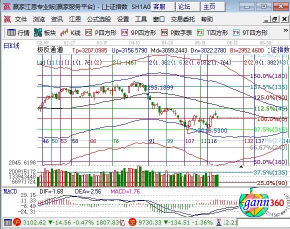 大盤(pán)周四低開(kāi)震蕩下跌0.47%,深成指和創(chuàng)業(yè)板跌幅較大分別下跌1%和2%,市場(chǎng)再現(xiàn)百股跌停模式。板塊方面,保險(xiǎn)、銀行、釀酒、家電和石油逆勢(shì)上漲,權(quán)重僅券商小跌;題材方面,次新、可燃冰、國(guó)產(chǎn)軟件、高送轉(zhuǎn)領(lǐng)跌,個(gè)股普跌成交量較前日略微放量。技術(shù)方面,滬指江恩百分比零度3097位置再度獲得支撐,收盤(pán)勉強(qiáng)站上3100點(diǎn),預(yù)計(jì)市場(chǎng)走勢(shì)如5月26號(hào)所言,圍繞在零度與極反通道構(gòu)成的空間運(yùn)行,昨日盤(pán)中已提醒短周期15將要失守,今天30、60分鐘生命線會(huì)形成盤(pán)中支撐,操作上控制倉(cāng)位在5成以下,針對(duì)波段股進(jìn)行差價(jià)操作,待市場(chǎng)有賺錢(qián)效應(yīng)后再開(kāi)新倉(cāng),3089、3078為日內(nèi)支撐,3118、3128為日內(nèi)阻力,僅供參考,不構(gòu)成任何投資建議。