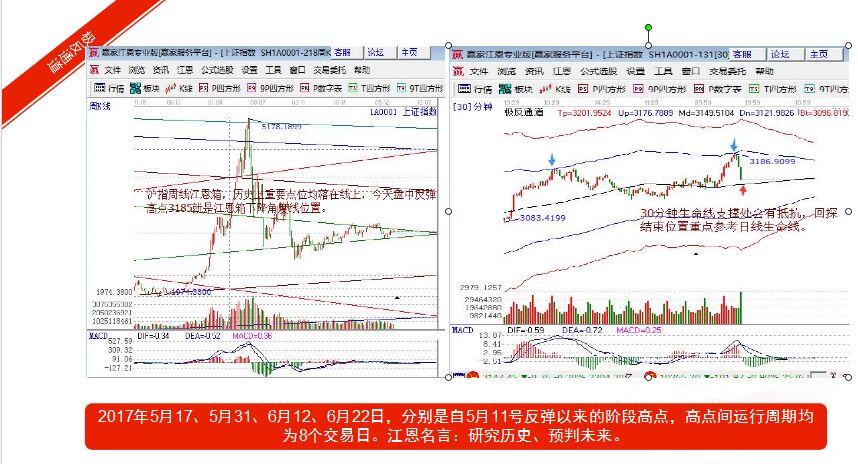 【贏家江恩點(diǎn)評:周線江恩箱在6月初提到本輪上攻注意3185點(diǎn),見下面贏家江恩股票軟件截圖,依據(jù)軟件工具規(guī)則,日線極反通道生命線回踩不破波段仍看好后市?!?/strong>