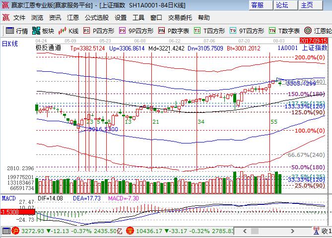 咨詢:13333833889周四大盤低開震蕩小跌0.37%,滬指兩連陰重心下移,創(chuàng)業(yè)板逆勢上沖回落收帶上影線的小陽線。板塊方面,鋼鐵、有色領(lǐng)跌,保險、家電、釀酒領(lǐng)跌;題材方面,漲價資源、雄安、粵港澳和次新局部表現(xiàn),蘋果、人工智能和草甘膦領(lǐng)跌,個股漲多跌少成交量萎縮。技術(shù)方面,滬指日線反抽極反通道外軌線和江恩百分比240度壓力3288點受阻回落,持續(xù)三天不能收益外軌線依據(jù)工具規(guī)則將震蕩向下尋找支撐,短周期30、60分鐘生命線分別在3265、3250點,15分鐘生命線3283為今日盤中阻力,2號已提示倉位下降1成至4成,近期先觀察3250得失,引位置不破還能向外軌線反抽,否則向下尋找日線生命線。3265、3253為日內(nèi)支撐,3282、3290為日內(nèi)阻力,僅供參考,不構(gòu)成任何投資建議。