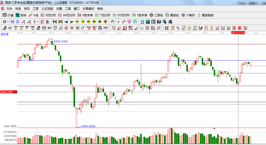 咨詢:13333833889滬深兩市沖高回落收出一根帶有長(zhǎng)上影線的倒垂線,權(quán)重股疲軟拖累大盤失守2200點(diǎn),成交量較前期有所回落,從均線系統(tǒng)分析多條均價(jià)線在下方支撐出現(xiàn)快速下跌的的概率較小,同時(shí)江恩軟件特色工具極反通道分析生命線在下方支撐,時(shí)間周期費(fèi)氏工具分析本周上半周短期修整將結(jié)束給出方向;盤面上以炒地圖、軍工、高送轉(zhuǎn)漲幅居前,煤炭、金融表現(xiàn)不佳;