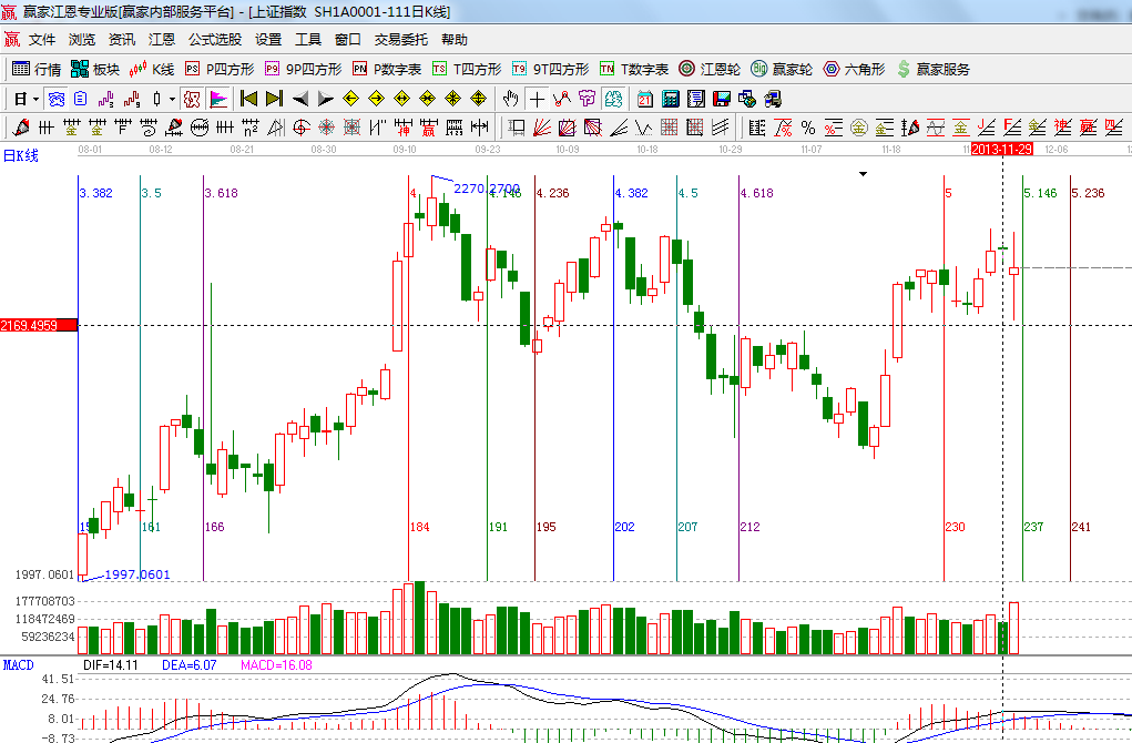 ☆依據贏家江恩系統(tǒng)波段百分比延伸提示:2444與1849點做黃金分割價格圖,0.382位置是2217點,下方支撐為0.5位置2150,上方拋壓在前期頭部2265附近;