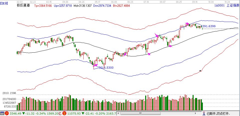 【贏家江恩點評:極反通道工具可幫助用戶解決大盤或個股趨勢判斷、價格買賣點,在日內(nèi)差價高拋低吸方面更能提示其優(yōu)勢?!?/strong>