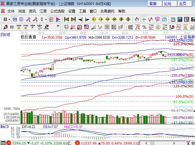 咨詢:13333833889滬指周四低開(kāi)沖高回落震蕩小跌,尾盤回落失守3400點(diǎn),全天大部分時(shí)間處于綠盤態(tài)勢(shì),深市幾大指數(shù)均小漲。板塊方面,保險(xiǎn)、釀酒、農(nóng)業(yè)、食品和醫(yī)藥板塊領(lǐng)漲,券商、煤炭、有爭(zhēng)和銀行等領(lǐng)跌;題材方面,維生素、豬肉、人工智能和生物疫苗股等局部表現(xiàn),次新、燃料電池、高鐵和雄安概念等跌幅居前,個(gè)股下跌居多成交量持續(xù)萎縮。技術(shù)方面,滬指60分鐘收盤失守生命線,15、30分鐘處于生命線與弱勢(shì)外軌線懸空可上可下位置,當(dāng)前短期15分鐘的走勢(shì)尤為重要,日線生命線是3382點(diǎn),更確切的說(shuō)江恩百分比315度3370點(diǎn)自10月以來(lái)對(duì)行情的走勢(shì)更為有參考性,前期分析中談到,3370點(diǎn)自10份以來(lái)多次回踩但每次收盤能站在上方,依據(jù)工具規(guī)則,短線的強(qiáng)勢(shì)以60分鐘生命線為參考線,波段以日線生命線做參考線,中長(zhǎng)期則是周線的生命線為參考線。創(chuàng)業(yè)板指圍繞生命線震蕩,下周是周線時(shí)間窗,并且日、周生命線都在1890附近,重點(diǎn)觀察滬指生命線、創(chuàng)業(yè)板指生命線得失。日線生命線不破波段倉(cāng)保持在5成,短線保持2成,3389、3382為日內(nèi)支撐,3412、3416為日內(nèi)壓力。僅供參考,不構(gòu)成任何投資建議。