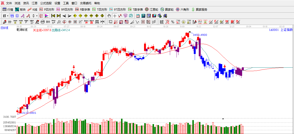 江恩看盤綜述:依據(jù)贏家江恩技術(shù)工具分析得出:周五,指數(shù)震蕩走高,尾盤收復(fù)3305點關(guān)鍵位置,是一個好的信號,但美中不足的是量能同比萎縮,接下來繼續(xù)關(guān)注3305點突破的有效性。如新年第一個交易日,如能繼續(xù)保持在3305點之上,指數(shù)有望繼續(xù)看高日線生命線3342點附近。不然繼續(xù)保持謹(jǐn)慎,操作上,繼續(xù)控制倉位的前提下,重點關(guān)注成長性良好有業(yè)績支撐的小盤股。