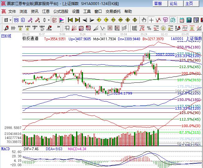 周二大盤低開低走放量大跌3.35%,深成指和中小板跌幅均在4%以上創(chuàng)近半年多新低。板塊普跌,銀行、釀酒、電力及保險跌幅相對較小,石油、券商、地產(chǎn)領(lǐng)跌權(quán)重;次新、芯片、人工智能、軟件領(lǐng)跌題材,兩市僅108家收紅,跌停家數(shù)近500家,上千只跌幅8%以上。技術(shù)方面,滬指收盤微破日線生命線,此線是波段強弱的分界線,多空雙方會對此線進(jìn)行激烈爭奪,短周期15、30、60分鐘均在弱勢外軌線附近,背離級別周期擴大。江恩百分比空間分析,2倍零度位置3420成為阻力,270度3321是下方支撐,生命線為爭奪線。創(chuàng)業(yè)板創(chuàng)3年新低,以周、月對中小板指的時間分析,近期產(chǎn)生的低點參考意義非常值得注意。操作上波段穩(wěn)健者可以休息,待短期趨勢明確后在做布局。中長線倉位4成持股不動,3360、3350為日內(nèi)支撐,3400、3425為日內(nèi)壓力。僅供參考,不構(gòu)成任何投資建議。