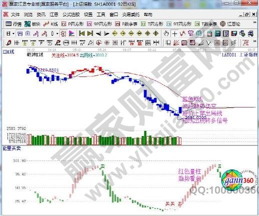 ☆依據(jù)贏家江恩理論系統(tǒng)乾坤K線提示:藍色K線,波段趨勢仍為空;股價突破出局線,短線出現(xiàn)轉(zhuǎn)多信號。