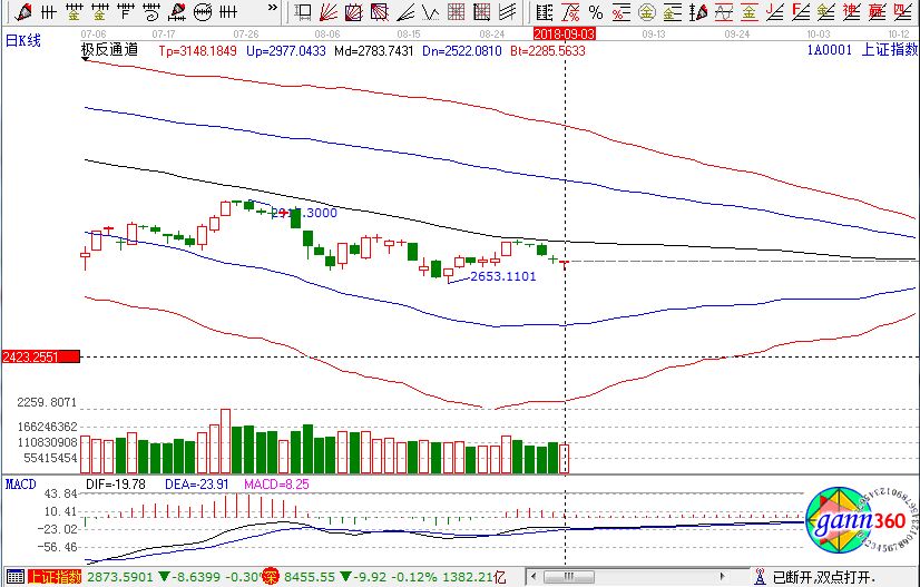 滬指跌0.17%,報(bào)收2720點(diǎn);深成指跌0.12%,報(bào)收8455點(diǎn);創(chuàng)業(yè)板漲0.59%,報(bào)收1443點(diǎn)。從盤面上看,電子發(fā)票、軍工、養(yǎng)殖業(yè)、國(guó)產(chǎn)軟件、食品安全、新疆、互聯(lián)網(wǎng)彩票等板塊漲幅幅居前;高送轉(zhuǎn)、機(jī)場(chǎng)航運(yùn)、5G、ST板塊、汽車整車、電子制造等板塊跌幅居前。滬股通凈流出1.7億,深股通凈流入5.8億。相應(yīng)的極反通道指標(biāo)的支撐壓力提示,如下圖所示: