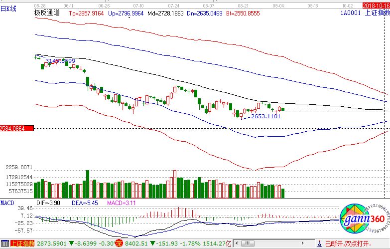 滬指跌1.68%,報(bào)收2704點(diǎn);深成指跌1.78%,報(bào)收8402點(diǎn);創(chuàng)業(yè)板跌1.74%,報(bào)收1430點(diǎn)。從盤(pán)面上看,半導(dǎo)體、高送轉(zhuǎn)、自由貿(mào)易港、集成電路、鋼鐵、造紙、水泥、白酒等板塊跌幅居前。滬股通凈流出23億,深股通凈流出6億。相應(yīng)的極反通道指標(biāo)的支撐壓力提示,如下圖所示: