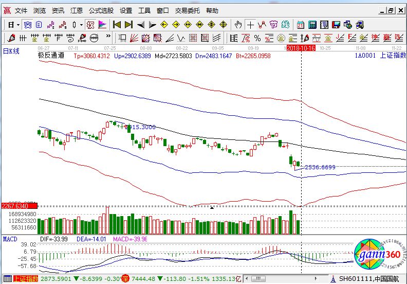 滬指跌1.49%,報(bào)收2568點(diǎn);深成指跌1.51%,報(bào)收7444點(diǎn);創(chuàng)業(yè)板跌1.43%,報(bào)收1250點(diǎn)。從盤面上看,鈦白粉、煤炭、超級(jí)品牌、知識(shí)產(chǎn)權(quán)保護(hù)、電子發(fā)票、草甘膦、汽車整車等板塊領(lǐng)跌。滬股通凈流出13億,深股通凈流入3億。相應(yīng)的極反通道指標(biāo)的支撐壓力提示,如下圖所示: