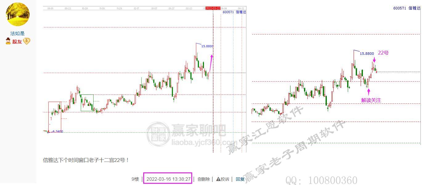 15號(hào)老子十二宮關(guān)注的青海春天,預(yù)測時(shí)間窗23號(hào),22號(hào)方向異動(dòng),按照贏家預(yù)測體系+操作體系,22號(hào)直接就是止盈位出局。5天4板的利潤空間!想賺錢,先要補(bǔ)充自己的認(rèn)知!