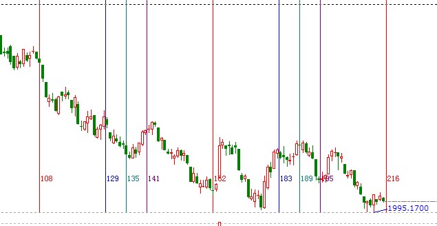 時(shí)間工具:黃金時(shí)間周期線,我們以2012年1月6號(hào)為起點(diǎn),2012年3月29號(hào)為終點(diǎn)做圖如下,11月27號(hào)是第四個(gè)循環(huán)的結(jié)束點(diǎn);
