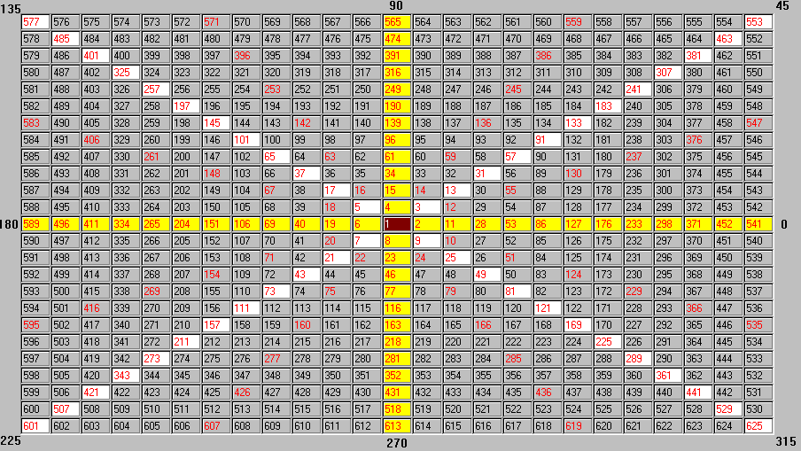 咨詢:13333833889| 下圖為著名的江恩測(cè)市工具-江恩螺旋四方形,也叫江恩正方形 |