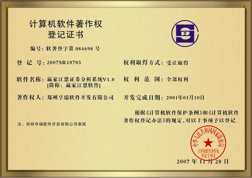 2007年獲得國家《計算機(jī)軟件著作登記證書》